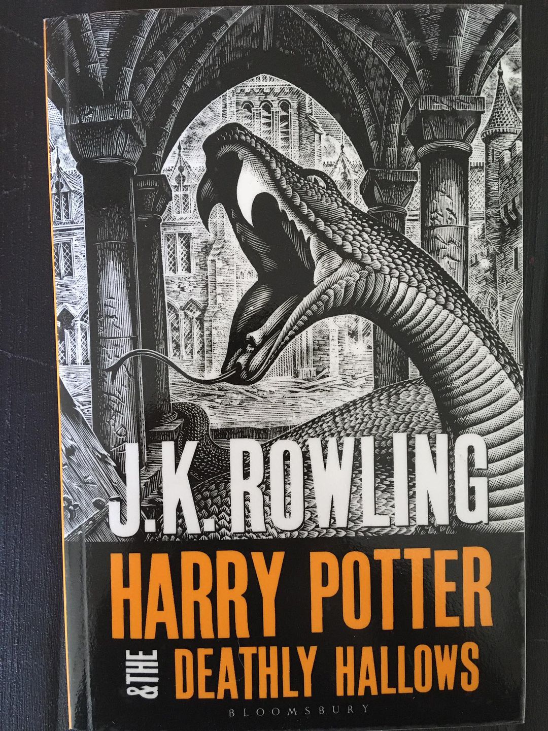 Harry Potter and the Deathly Hallows is the seventh and final book in the Harry Potter series by J. K. Rowling. It was released on 21 July, 2007 at 00:01 am local time in English-speaking countries. It is followed by a sequel to the original series, Harry Potter and the Cursed Child. The title was first released to the public through a hangman game posted by J. K. Rowling on her official website on December 21, 2006. Shortly afterwards, it was confirmed by the publishers. Rowling left a note, written on a bust of Hermes in her room at the BalmoralHhotel in Edinburgh, saying, "JK Rowling finished writing Harry Potter and the Deathly Hallows in this room (652) on 11th Jan 2007". On her website she said, "While each of the previous Potter books has strong claims on my affections, Deathly Hallows is my favourite, and that is the most wonderful way to finish the series." She has previously said that although all the books carry on the story, Deathly Hallows is more a continuation of the story in the previous book, Harry Potter and the Half-Blood Prince, than has been the case with any other book in the series.