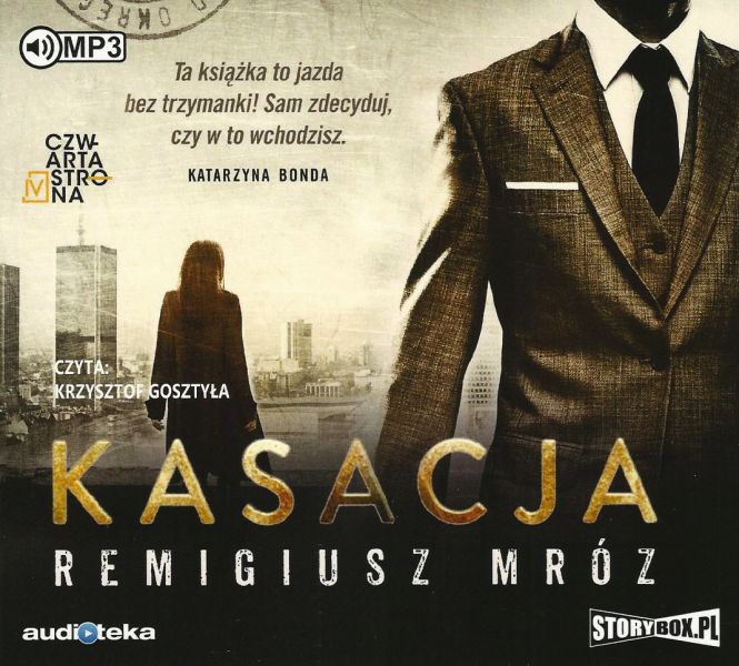 opis pochodzi z okładki książki Tytuł: "Kasacja" Autor: Remigiusz Mróz Wydawnictwo: Czwarta Strona Korekta: Magdalena Owczarek Projekt okładki: Mariusz Banachowicz Wydanie: I Oprawa: miękka Data wydania: 18 lutego 2015 Liczba stron: 492 ISBN: 978-83-7976-247-7