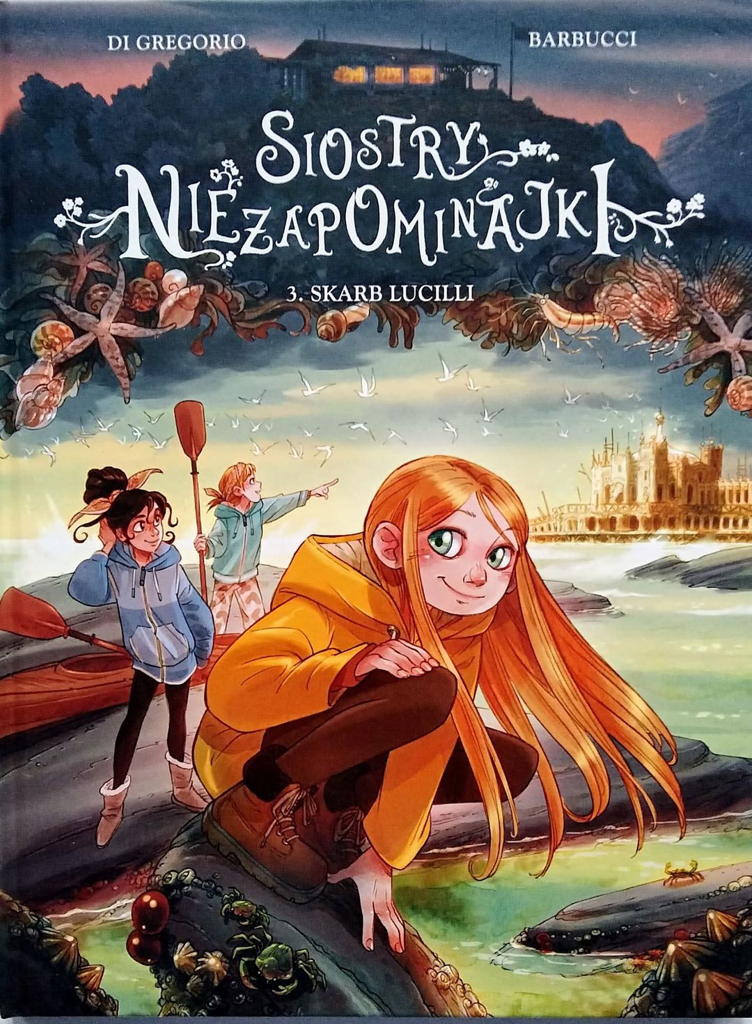 Komiks, trzeci tom cyklu. Dziewczyny wyjeżdżają na kolonie do miasteczka położonego na francuskim wybrzeżu Atlantyku. Lucilla, najmłodsza z sióstr, spędza całe dnie na poznawaniu zwierząt morskich, znajduje nawet wyrzuconego na brzeg żywego wieloryba. Jak się tam znalazł? Równocześnie bohaterki wpadają na trop tajemnicy sprzed stu lat, związanej z ich daleką krewną i ruinami luksusowego hotelu. Siostry starają się wyjaśnić obie sprawy i nawet nie przypuszczają, jak ważne sekrety z przeszłości ujawni ich śledztwo. Poprzedni tom nosi tytuł "Miłości Kasjopei".[bonito.pl].