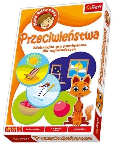 Przeciwieństwa : Edukacyjna gra pamięciowa dla najmłodszych. - Gdynia : Trefl, [2018]. - 1 gra (22 klocki) : karton, tektura, kolor ; w pudełku 29x19x4 cm.