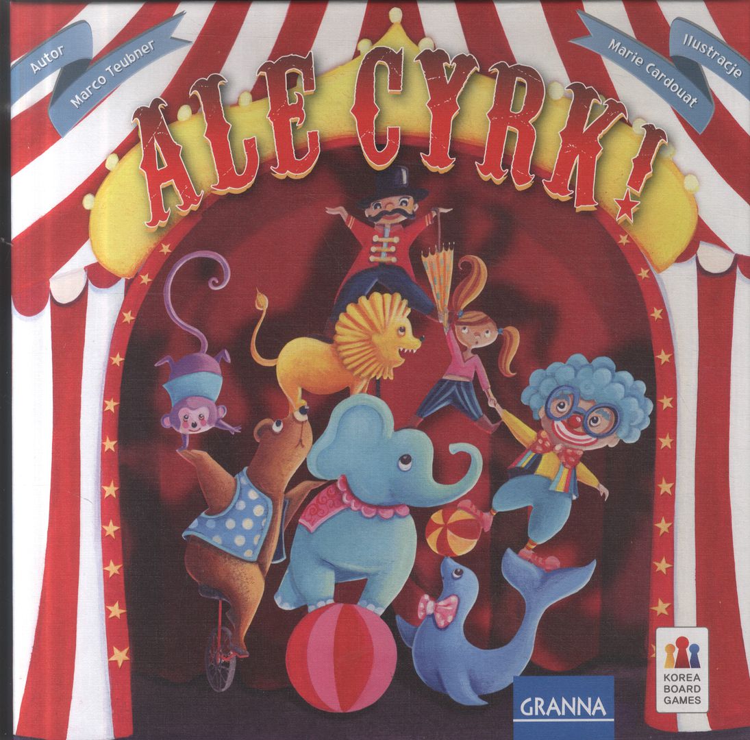 Ale cyrk! / autor Marco Teubner ; ilustracje Marie Cardouat. - Warszawa : Granna, copyright 2018. - 1 gra : karton, papier, plastik, kolor ; w pudełku 26x26x8 cm.