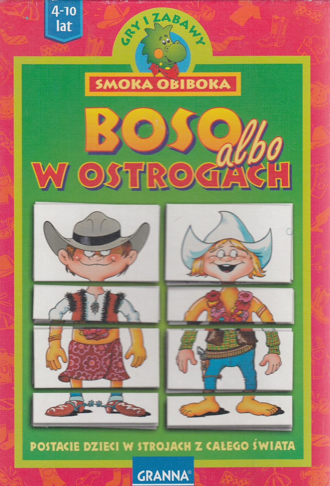 Boso albo w ostrogach / ilustracje Edward Lutczyn. - Warszawa : Granna, [brak daty wydania]. - 1 gra (64 karty, 1 kostka) : karton, tektura, plastik, kolor ; w pudełku 28x20x5 cm + instrukcja (12 stron : ilustracje ; 21 cm).
