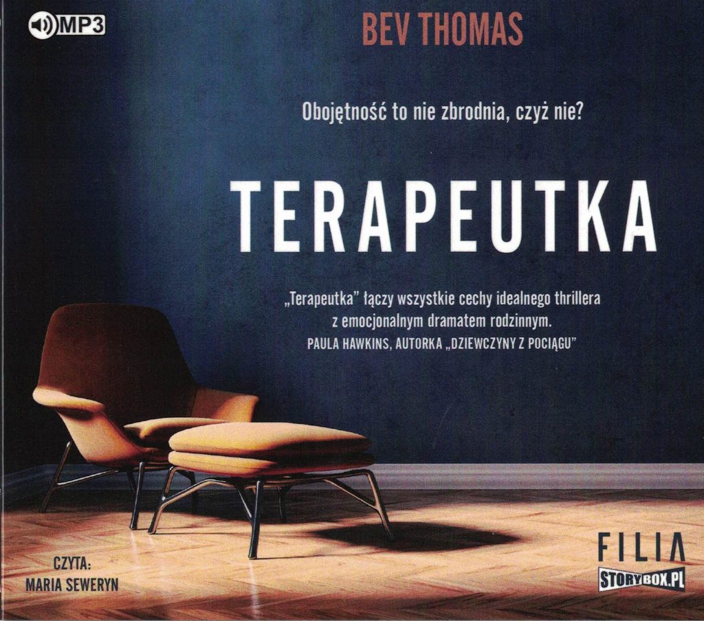 Terapeutka / Bev Thomas ; przekład Joanna Grabarek. - [Piaseczno] : Wydawnictwo Storybox.pl - Heraclon International ; [Poznań] : Wydawnictwo Filia, copyright 2020. - 1 płyta CD (11 godz. 31 min) : digital, stereo. ; 12 cm.